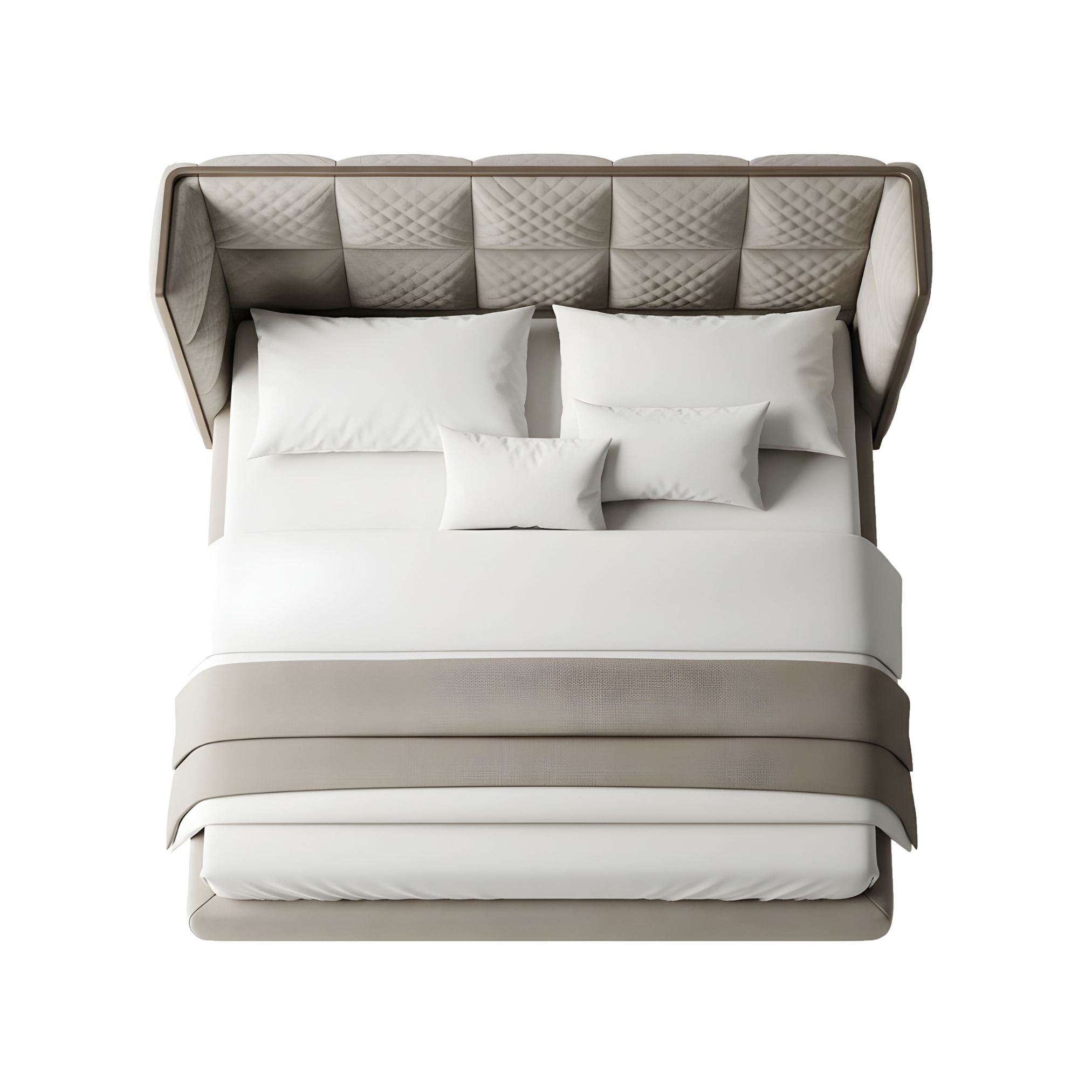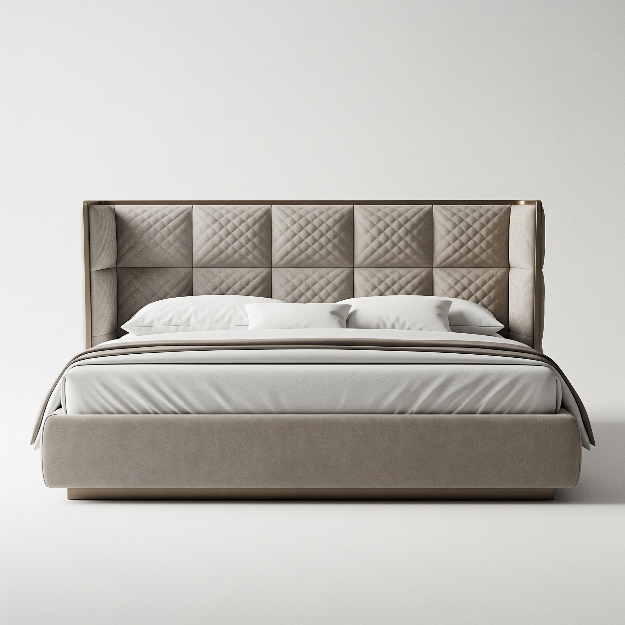 The Celestia Bed is a modern classic, defined by its grand quilted headboard that blends artisanal detail with architectural precision.